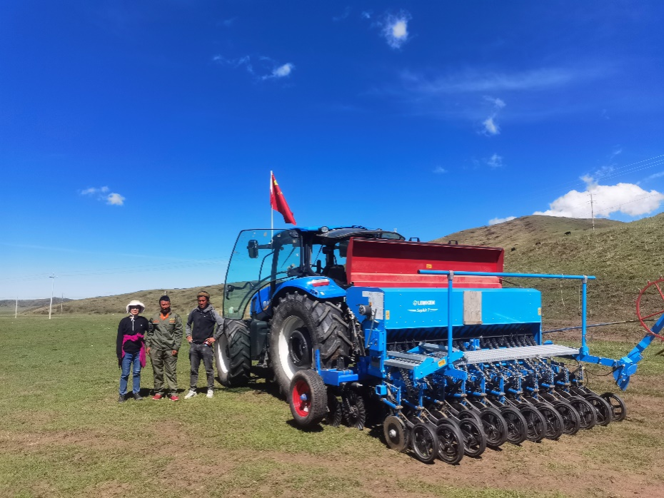 国家乡村振兴科技特派团(牧草专家特派团)成员刘琳教授、周冀琼副教授一行7人于5月23日至28日在四川阿坝州红原县开展了退化草地免耕补工作。此次工作覆盖了70亩轻度退化草地和8亩重度退化草地,旨在通过禾豆混播、一年生和多年生混播技术,补播牧草品种,包括本土品种和引进品种,以恢复退化的草地生态系统。