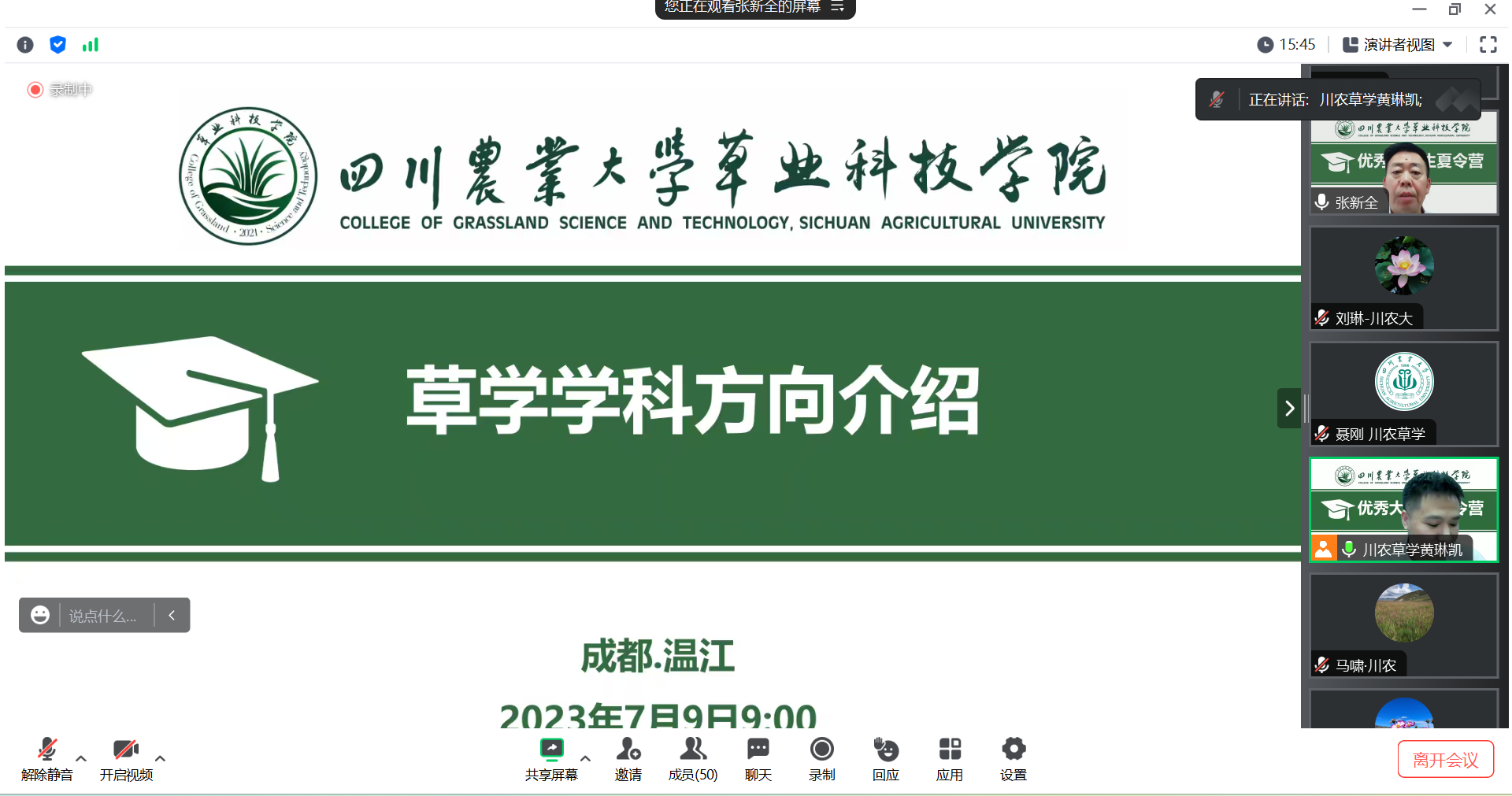 学科建设、师资队伍、学术成果、人才培养等方面进行了详细介绍。草地资源与生态系主任刘琳教授、草育种与栽培系主任聂刚副教授、草坪科学与工程系主任李州副教授分别对各系研究方向、科研与教学成果以及导师情况进行了详细介绍。a片网站