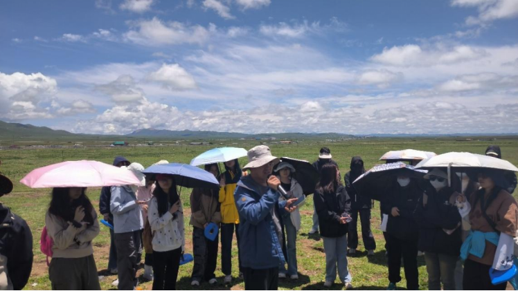 4日上午,90余名师生前往四川省草原科学研究院二农场基地,参观了高原牧草及生态草种质资源圃。在马啸教授的细致讲解下,同学们深入了解了高原牧草的基本特性、选育技术与栽培要点,对各高原主要栽培牧草形成了系统认知。下午,师生在西南民族大学张伟老师带领下,参观了若尔盖高寒湿地生态系统国家野外观测站。随后,师生一行前往中国科a片网站
