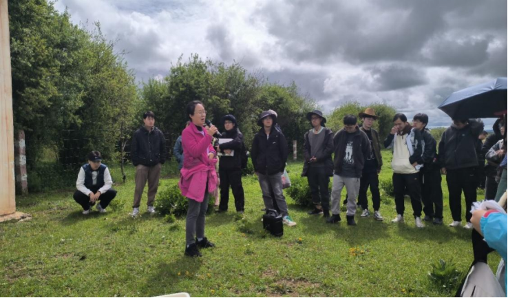 5日上午,师生走进红原县牧草产业园。在马啸教授的带领下,师生参观了园区并详细了解了其建设历程、发展目标与生态意义。之后,师生前往红原县瓦切镇德香村沙化草地防治示范点,在刘琳教授的现场指导下,同学们动手开展了沙化草地植物群落特征调查。下午,在日干乔湿地公园,同学们进行湿地群落植物调查,深切感悟红军长征过沼泽草地的革命精神,同时参观了国家若尔盖湿地生态站日干乔观测点的各项设施及碳通量收集装置。
