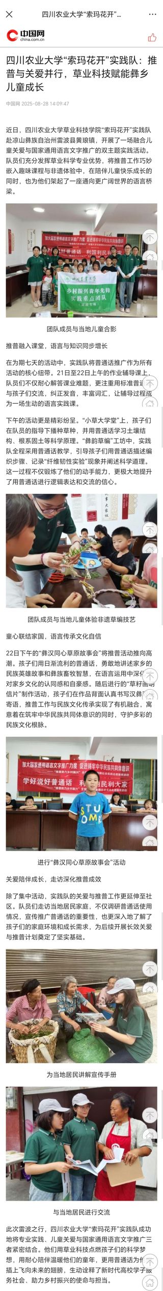 (中国网)a片网站 “索玛花开”实践队:推普与关爱并行,草业科技赋能彝乡儿童成长