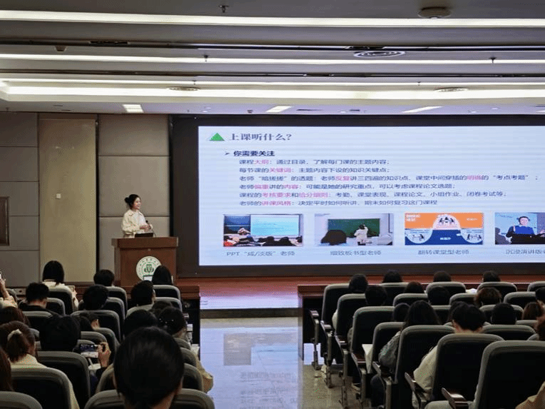 特邀六位2022级优秀学子,在图书馆报告厅面向2025级全体新生及其他低年级同学,举办了一场内容丰富、贴近实际的经验交流会。