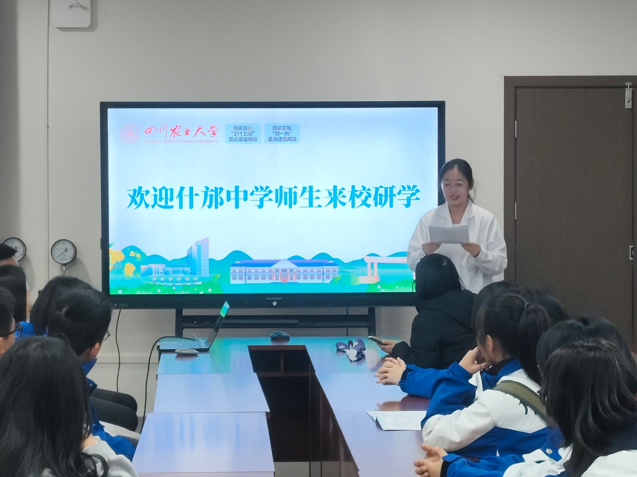 对什邡中学师生的到来表示热烈欢迎,并结合国际志愿者日的背景,阐述了本次活动的双重意义:既让中学生近距离感受高校学术氛围与草业学科的价值,也在实践中传递“奉献、友爱、互助、进步”的志愿精神,激励青年学子在求知中树立服务社会的责任感。