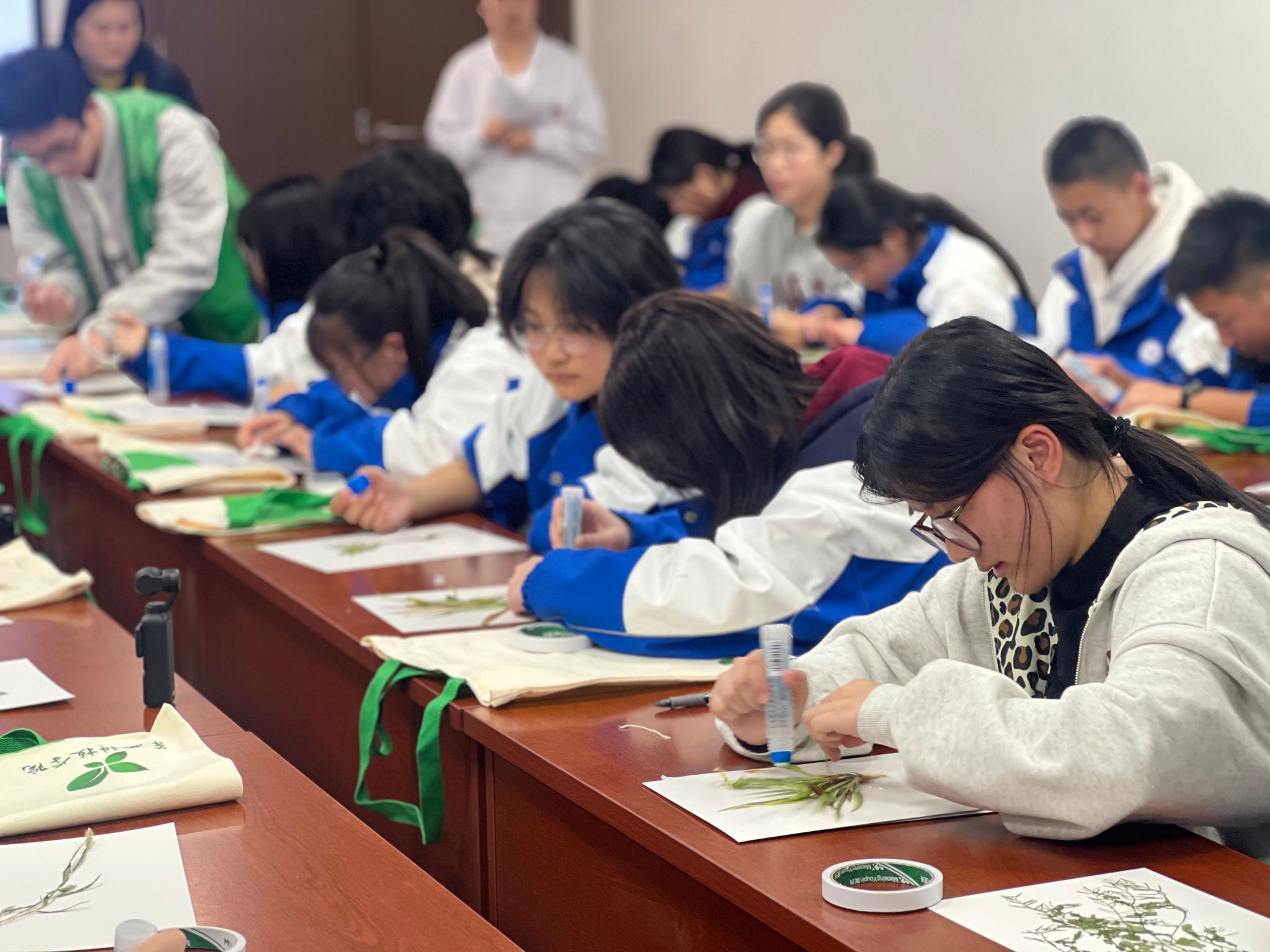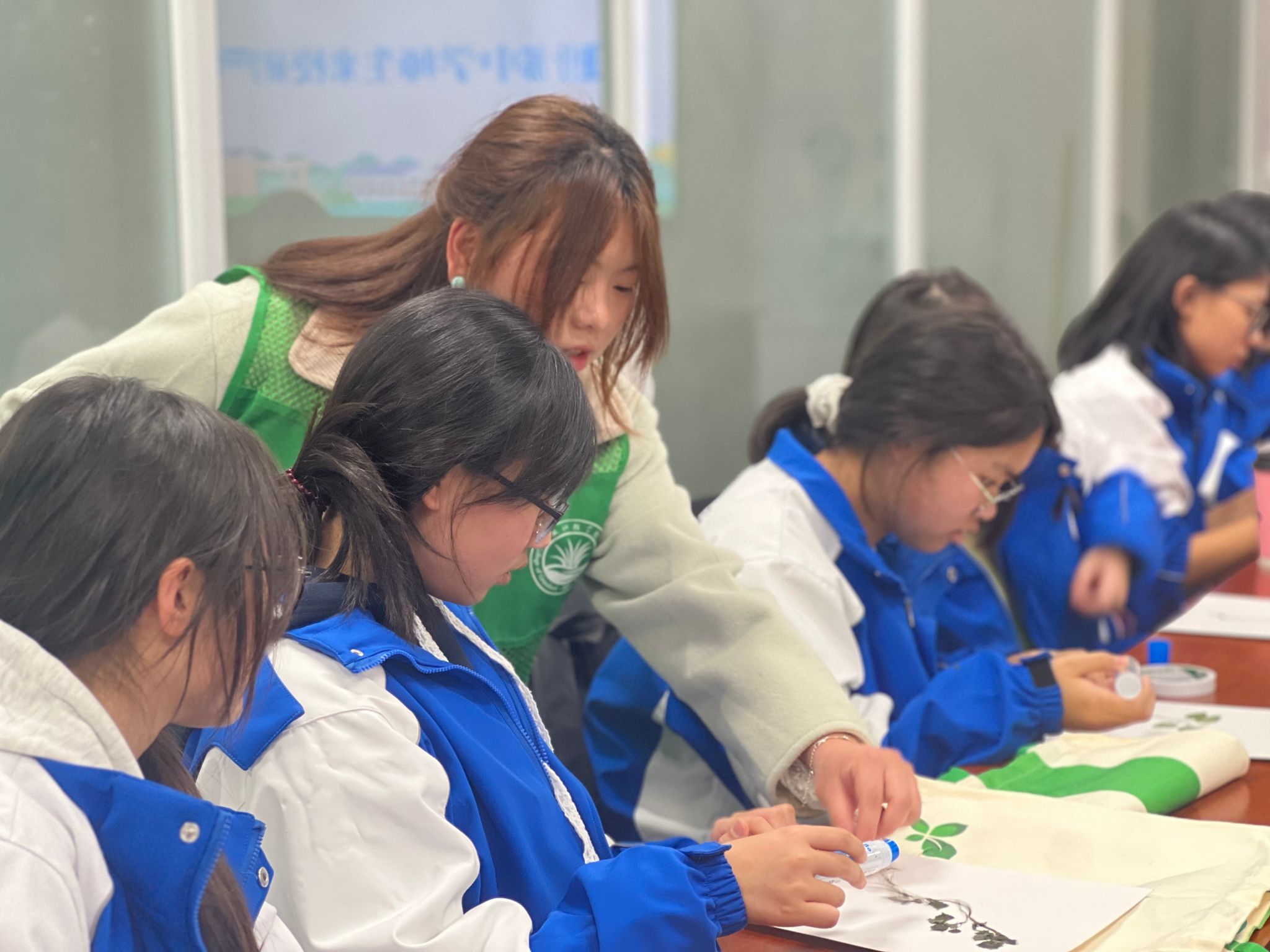 团委实践与志愿服务部的志愿者们指导同学们动手制作植物标本。从挑选植物、整理标本夹到标注物种信息,同学们在志愿者的耐心讲解中逐步操作,不仅体验了植物分类学的趣味,也在协作中深化了对志愿服务精神的理解。