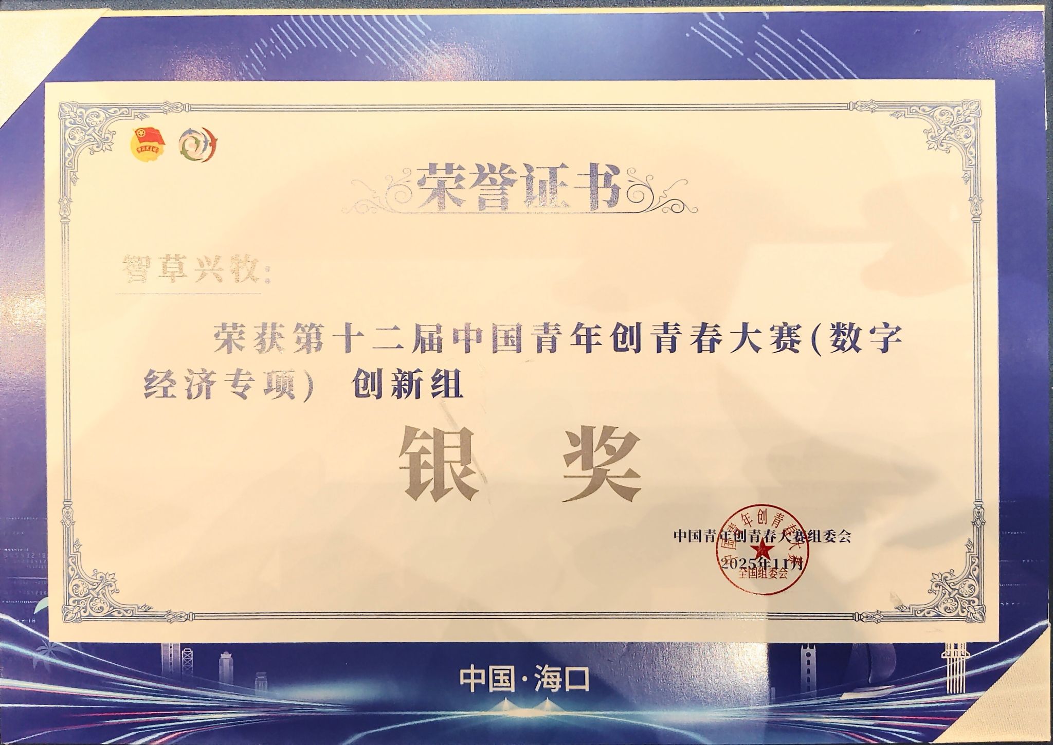 《智草兴牧——数字化牧业与饲草精准种植引领者》项目斩获创新组国家级银奖。